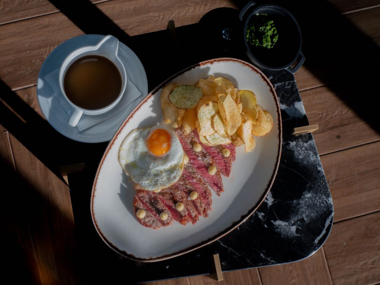 “O resultado é uma proposta gastronómica bastante diferente da existente na zona — até pelo uso de técnicas de confeção modernas —, que se destaca ainda mais por ser apresentada num ambiente acolhedor, no qual sobressai uma decoração elegante em que o azul está em evidência”,